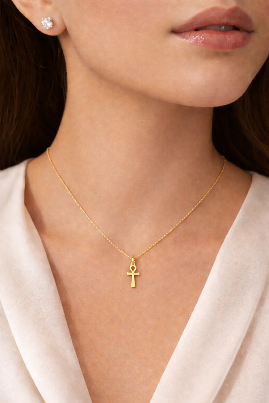 18K Yellow Gold Egyptian Ankh Cross Pendant